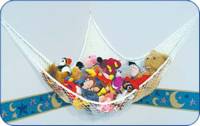 Stretchy hammock conveniently gets toys off the floor and out of the way! Expands up to six feet long and is easy to install. Includes three hooks and can be used in any corner.