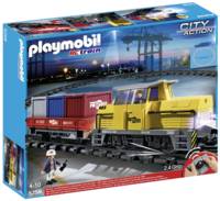 Attach the train car loaded with cargo and transport it down the tracks with the RC Freight Train. The included multi-functional RC module not only controls the train's movement but also activates the set's special effects, including front and rear lights, warning sound, and engine noise. The front car houses the conductor, who can enter and exit the car through the side door. The cargo car comes equipped with a side door that folds down, making it easy to load and unload goods. Once the train is fully loaded, travel around the large oval track (56.7 x 45.7 in). Set includes two figures and three containers.